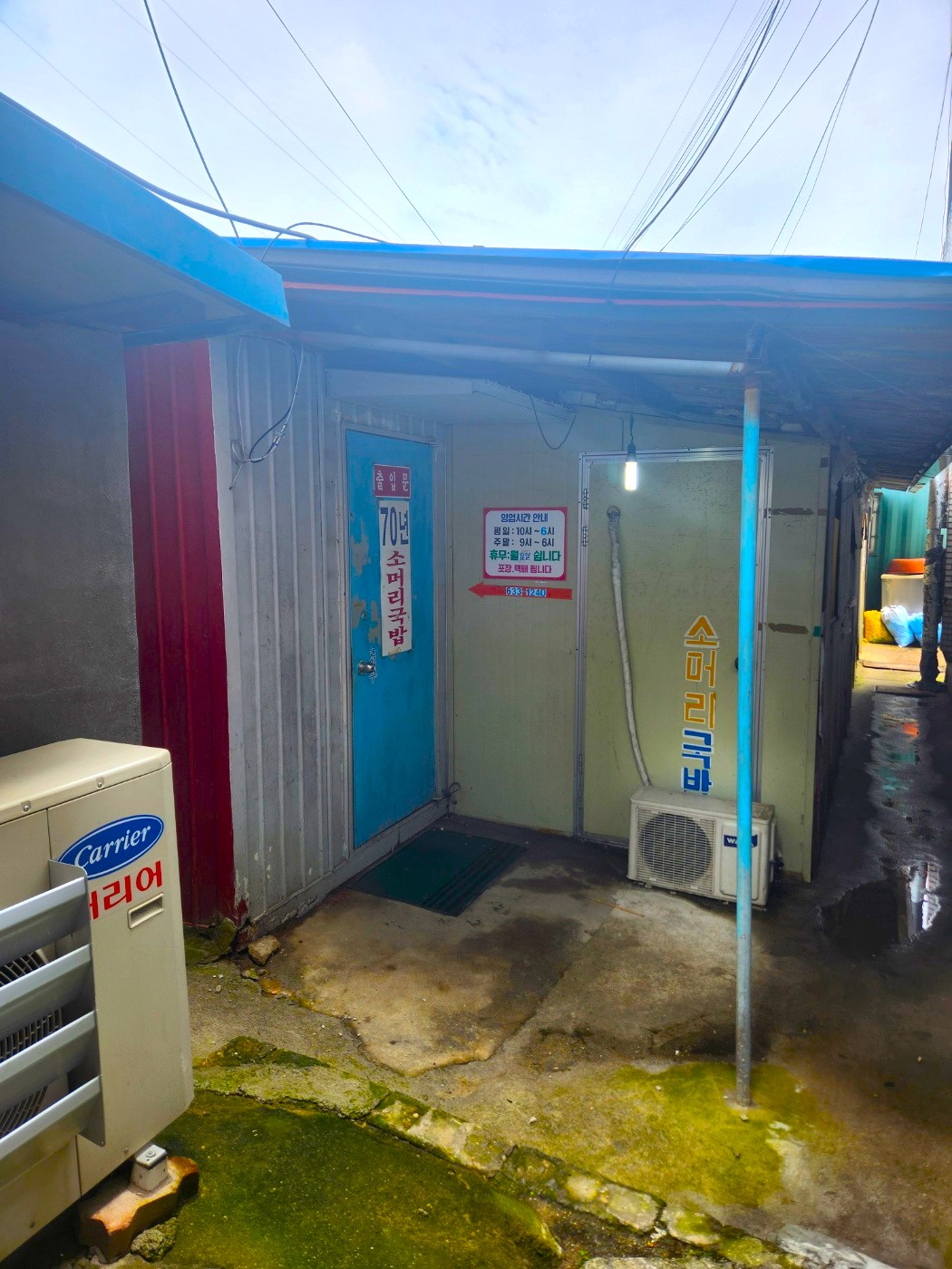 지도 네비를 따라 찾아가니 건물 사이 골목 입구에 70년 소머리 국밥 간판이 있었습니다.