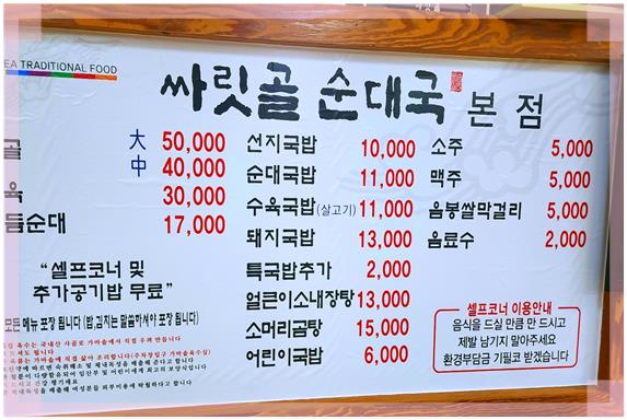메뉴 구성은 순대국밥과 모듬순대.