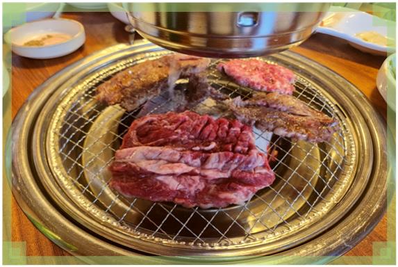 숯불에 고기를 올리자 마자 입안에 벌써부터 침이 고이기 시작하더군요