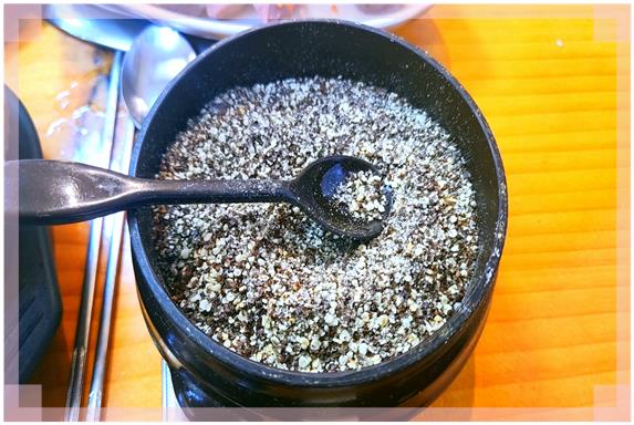 들께가루도 물론 준비되어 있습니다. (소금, 후추도 테이블에 있어요)