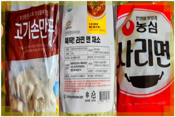우동,김밥, 쫄면, 돈가스 등 다양한 메뉴들 중