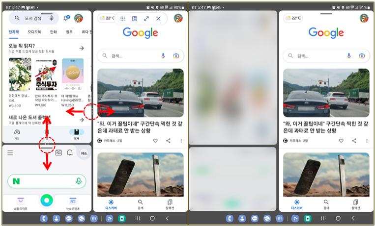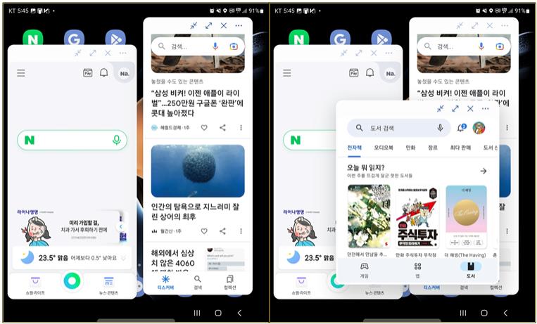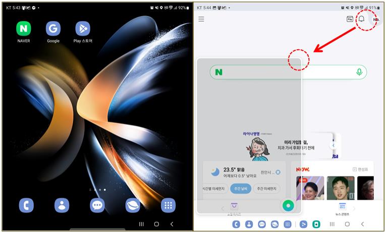 크기를 조절하여 동시에 보는 일이 많은데 갤럭시폴드4에서도 이것이 가능합니다.