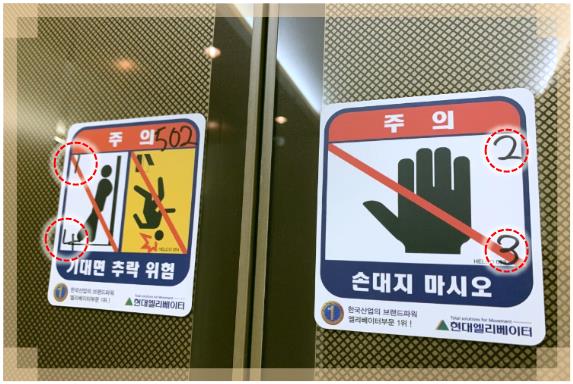 3. 엘리베이터 문에 붙은 스티커 확인하기.