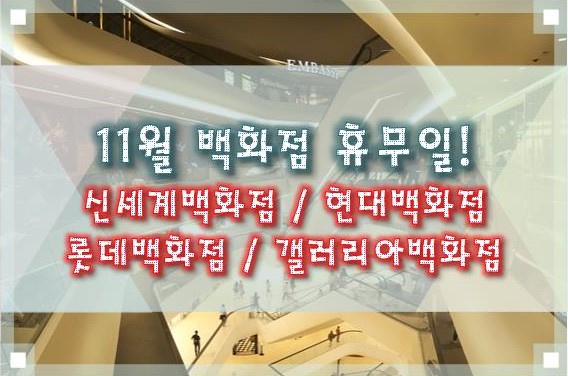 11월 신세계백화점 / 현대백화점 / 롯데백화점 / 갤러리아백화점 휴무 일정에 대해 정리해보겠습니다.