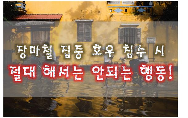 오늘은 장마철 집중 호우 침수 시 절대로 해서는 안되는 행동에 대해 간단히 살펴보려 합니다.